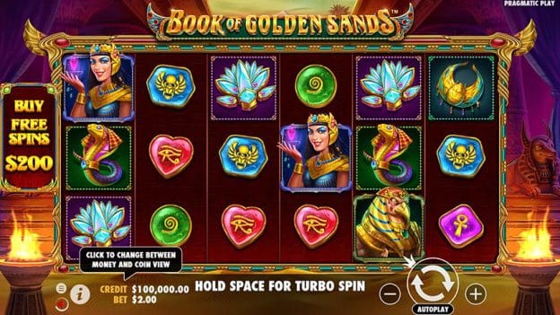 Book of Golden Sands adalah slot yang dikembangkan oleh Pragmatic Play. Game ini hadir dengan 6×3 gulungan dan 729 cara untuk menang, RTP variabel hingga 96,46 persen, dan termasuk slot varian tinggi. Slot bertema Mesir ini juga menampilkan putaran gratis dengan simbol yang diperluas. Pragmatic Play telah memutuskan untuk menjadi lebih berkembang karena mereka tahu tidak dapat membuat permainan slot Mesir Kuno tanpa menambahkan sesuatu untuk membuatnya lebih istimewa, jadi ada enam gulungan dan 729 cara standar untuk menang, yang jauh melampaui garis pembayaran biasa. Simbol wild memiliki multiplier dan putaran bebas memiliki simbol yang berkembang.