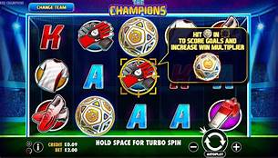 Menangkan posisi teratas di The Champions slot, meruslot video 3×5, 25 baris. Pilih tim favorit Anda dan cobalah untuk mencetak gol untuk meningkatkan pengganda kemenangan hingga 20x dan menggulingkan kompetisi dengan 5 tembakan penalti hadiah yang meningkat pada Game Bonus. Anda perlu segera pergi ke lapangan karena permainan akan segera dimulai, stadion begitu ramai bahkan hampir tidak bisa melihat pendukung berteriak kegirangan begitu Anda menginjak rumput. Mereka datang untuk melihat permainan yang bagus, dengan pengganda tertinggi! Anda dan anggota tim Anda berada di ruang ganti, mendengarkan instruksi terbaru pelatih dengan penuh perhatian kemudian berlatih keras dan bekerja sebagai tim, maka Anda tidak boleh menyerah karena Anda berada di final Liga Pemenang yang sangat dekat untuk memenangkan Piala.